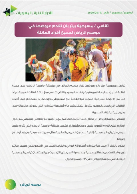 تواصل مسرحية «بيتر بان» عروضها لزوار موسم الرياض في منطقة «واجهة الرياض» ،على مسرح